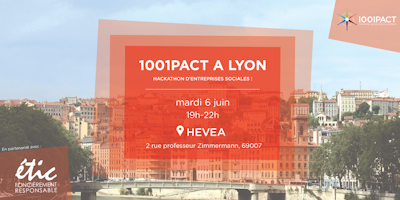 A l'occasion de l'ouverture du centre Etic HEVEA, L’équipe de 1001PACT est heureuse de vous convier à leur soirée « 1001PACT à Lyon : Hackaton d'entreprises sociales ! » le mardi 6 juin à 19h.