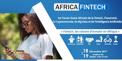 Africa Fintech Forum 2017 est le 1er forum Ouest African dedié à l'écosystème de la finance digitale: fintech, insurtech, blockchain, cryptomonnaie, big data, AI. Cet évènement se tiendra les 18 et 19 Decembre 2017 au Radisson Blu Abidjan Airport.