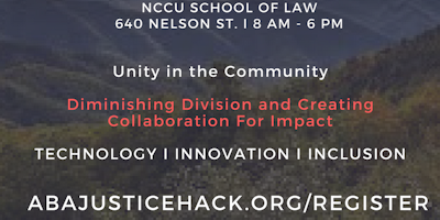 On Saturday, April 7th, the American Bar Association's Coalition on Racial & Ethnic Justice and NCCU School of Law will host a free, full-day ABA JusticeHack. All meals, including breakfast , lunch snacks and evening lite bites are included.
