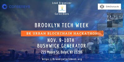 Arrive on Friday night at 6:00 pm for a panel on the connection between Urban and Blockchain, followed by tutorials and workshops on smart contracts and DAO’s. Get a good night's rest and get ready to hack towards and awesome future for Brooklyn.